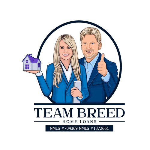 We are a married couple who do mortgages together. We would like something cartoonish that looks like the two of us.